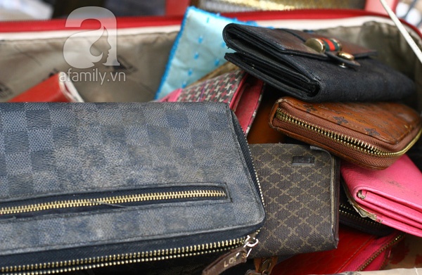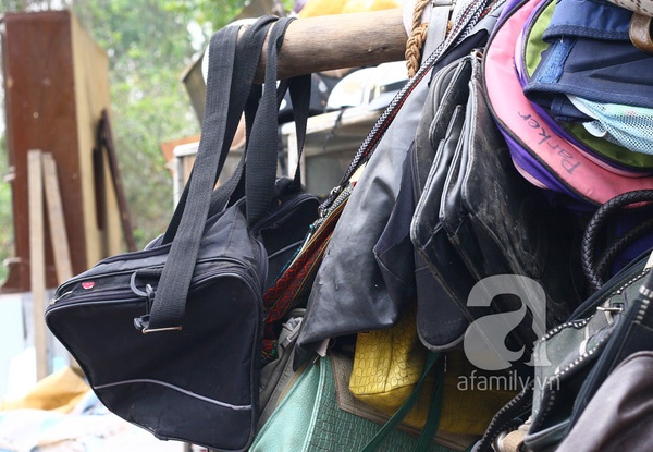 Những chiếc túi xách, ba lô, cặp, một số trong đống này được bà cho là "hàng hiệu".