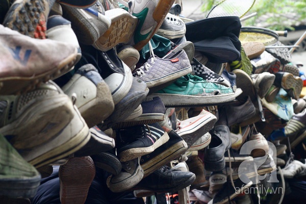 Những đôi giày cũ được bà Mỹ treo khắp lối ra vào.