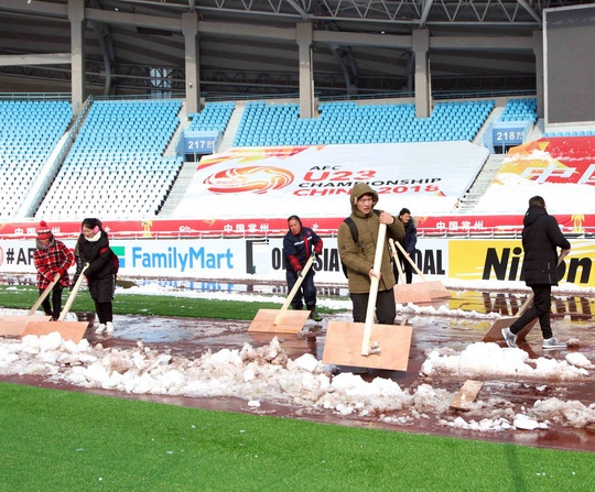 Ngay lập tức, ban quản lý sân đã cho công nhân vào tiến hành dọn dẹp, gia cố lại các tấm bạt để bảo quản mặt sân cho trận chung kết giữa U23 Việt Nam và U23 Uzbekistan vào lúc 15 giờ ngày 27-1. Theo dự báo thời tiết của Trung Quốc, tuyết sẽ rơi trở lại ngay trong đêm 26, rạng sáng 27-1, thậm chí ở thời điểm diễn ra trận chung kết, nhiệt độ sẽ là -2 độ C và có mưa tuyết.