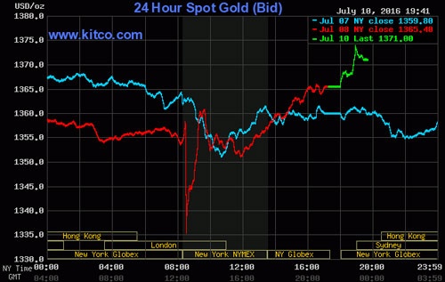 Mức tăng 5,6 USD ngay sau khi thị trường châu Á mở cửa giao dịch trở lại cho thấy sức cầu đối với mặt hàng này rất lớn. Những tin tốt về việc làm ở Mỹ trong phiên giao dịch cuối tuần trước đã không thể xóa đi được những nỗi lo của giới đầu tư về hậu quả của việc người Anh chọn rời Liên minh châu Âu - EU cũng như hiện tượng lợi suất trái phiếu ở nhiều nước liên tục lập đáy mới trong tuần vừa qua.