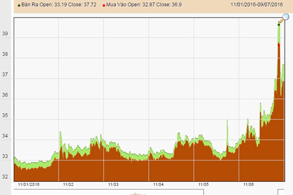 Trên thị vàng trong nước, giá vàng chốt cuối tuần qua ở mức khoảng 37,5 triệu đồng/lượng sau khi đã có những thời điểm lên tới đỉnh cao trong 3 năm: 40 triệu đồng/lượng.