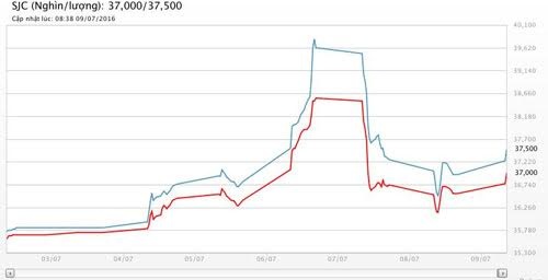 Tính chung trong tuần qua, giá vàng SJC đã giảm tổng cộng khoảng 700.000 đồng/lượng ở cả 2 chiều mua và bán. Khoảng cách chênh lệch giữa giá mua vào và bán ra vẫn được duy trì ở mức cao 400 nghìn đồng/lượng. Phần lớn thời gian trong tuần, vàng SJC đánh mất mức giá 37 triệu đồng/lượng nhưng tới cuối tuần một số DN kinh doanh vàng đã đưa giá về tới mức này.
