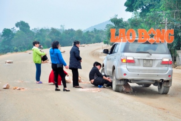 Để qua được đoạn đường đầy “chướng ngại vật” này, cánh lái xe hết sức vất vả, chạy như rùa bò. Nhưng thỉnh thoảng vẫn có lái xe “dính đòn” những hòn đá phía dưới. Phải mất rất nhiều thời gian mới lấy được đá mắc kẹt ra khỏi gầm, còn xe đã bị trầy xước.