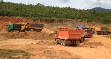 Vừa dừng xe trước mỏ đá Hồng Sơn, chúng tôi thấy ba chiếc xe ben vừa ăn hàng xong đang trên đường chạy ra. Nhìn lên mỏ đá chỉ thấy đất bụi bay mù mịt, hai chiếc xe chuyện dụng đang múc đất đổ ào ào lên thùng của những chiếc xe ben nằm chầu chực. Khi PV đóng vai khách hàng nói cần mua một số lượng đất lớn để san lấp mặt bằng, ông Ân (chủ mỏ đá Hồng Sơn) giới thiệu, mỏ đá của ông có trữ lượng khoảng 1 triệu m3 đất. Hàng ngày có rất nhiều xe vào, ra mua đất san lấp mặt bằng. Ông Ân ra giá, nếu đưa máy đến múc lấy đất, ông tính cho 5.000 đồng/1m3. Nếu ông cho máy đào xúc đất lên xe thì sẽ tính 10.000 đồng/1m3. Ông cười nói: "Đất ở mỏ đá tui bán rất thoải mái, chủ yếu đất thải. Chuyện thuế má không phải mất".