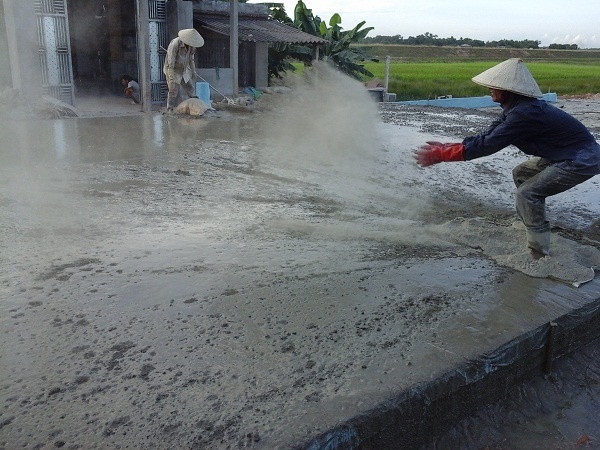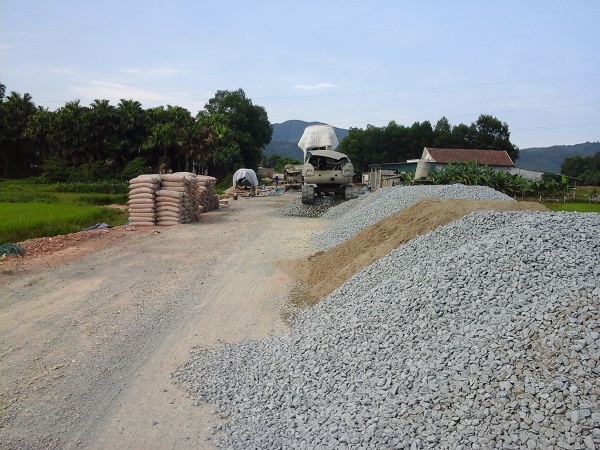 Cũng theo thiết kế thi công đá 1x2, M300# dày 27cm nhưng công nhân đang thi công là đá 2x4. Theo một công nhân ở đây thì cho hay “người viết phiếu quản lí công trình ở đây đưa cho lái xe chở đá không phải phiếu đá 1x2”.