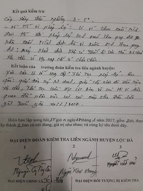 Biên bản kết luận của Phòng Công thương Lộc Hà